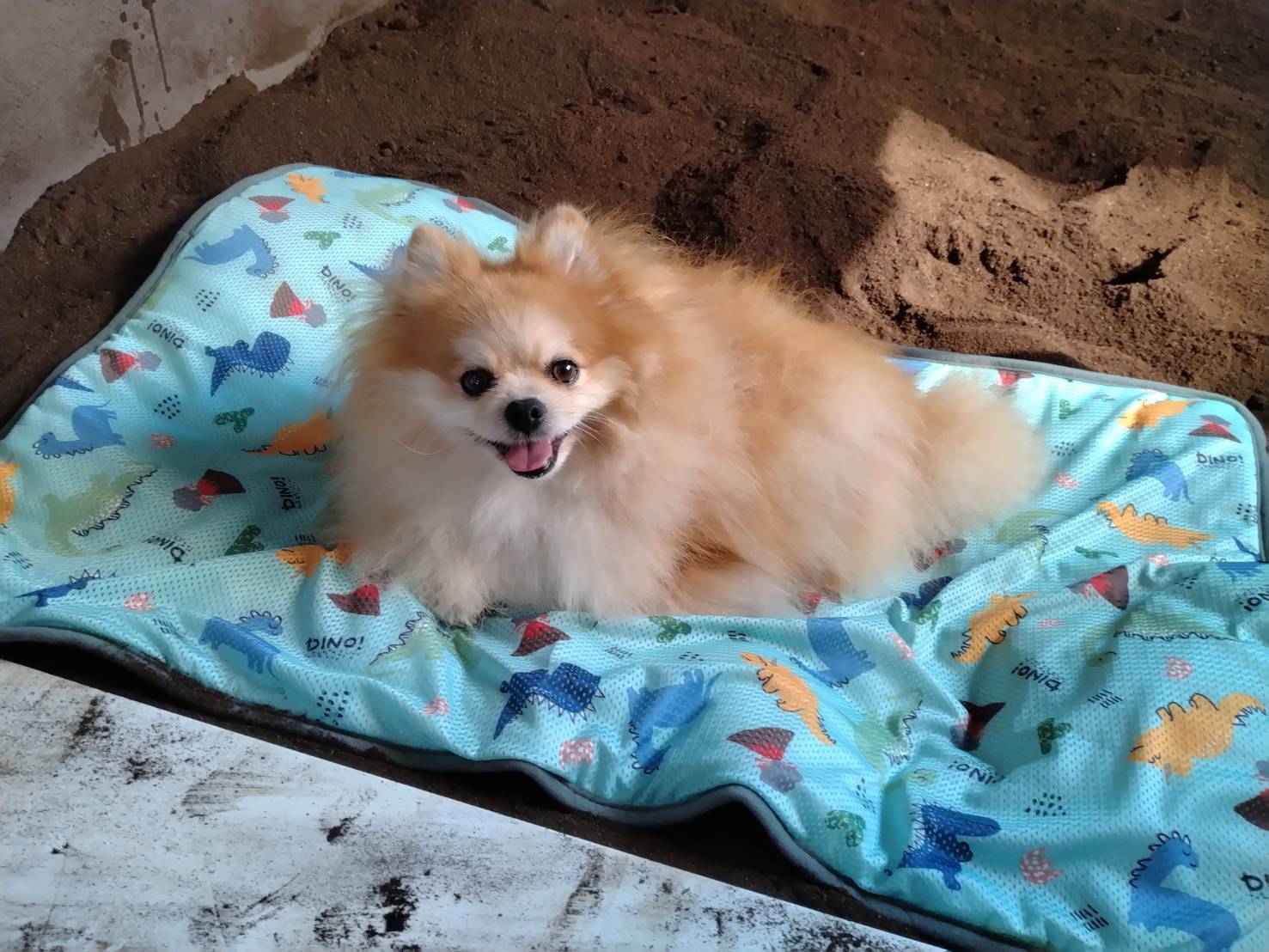 酵素床の上に、バスタオルやペット用マットを広げます。